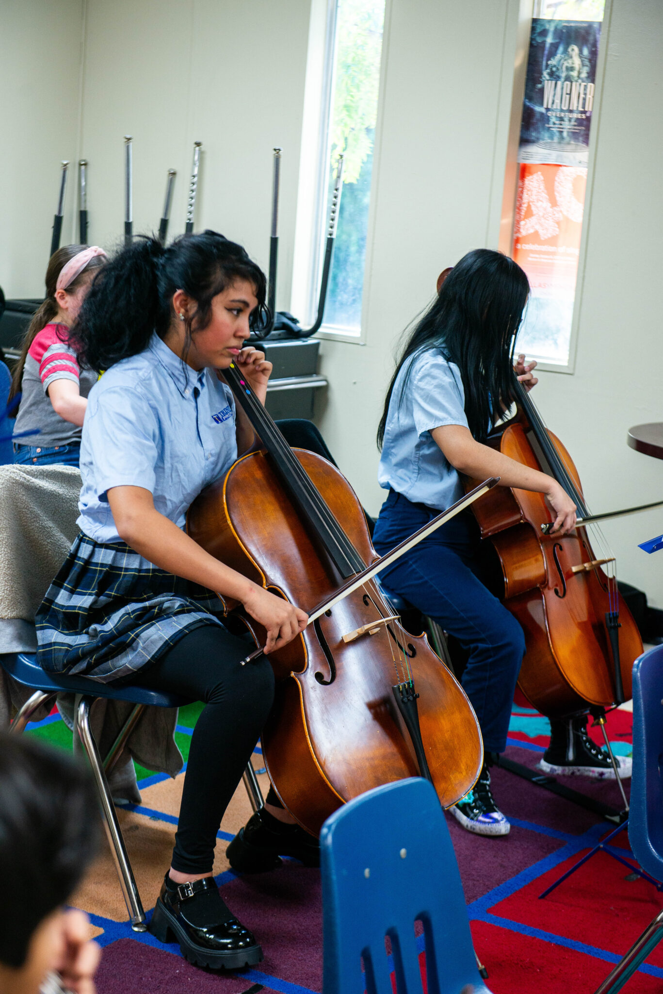 The Ledbetter Campus hosts two orchestras with 165 students total — the beginner and advanced orchestras. During the week, Tuesday through Thursday, all student musicians meet after school. The advanced orchestra participates in the same rehearsals with beginners, with advanced students attending additional Friday night and Saturday morning practices.
