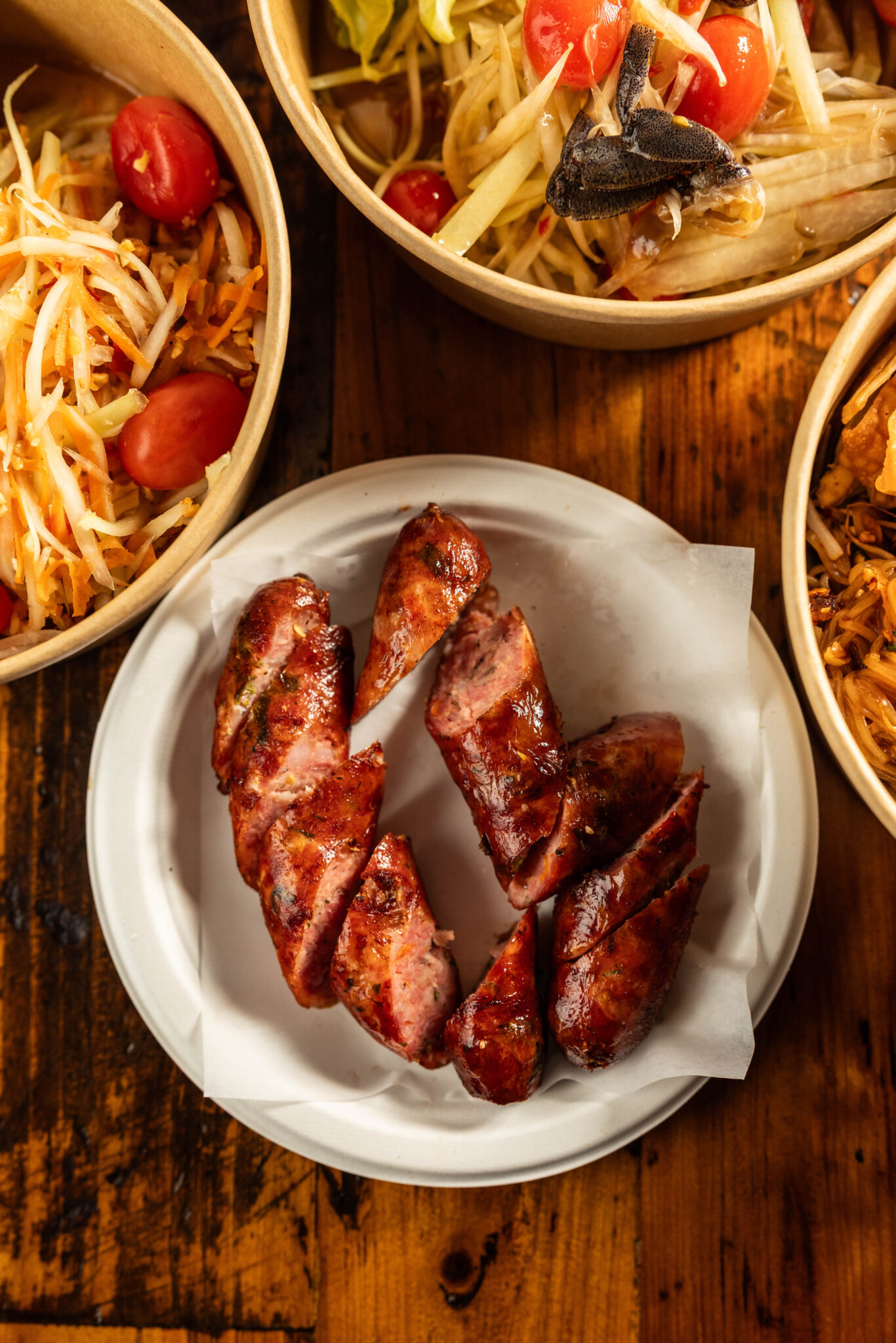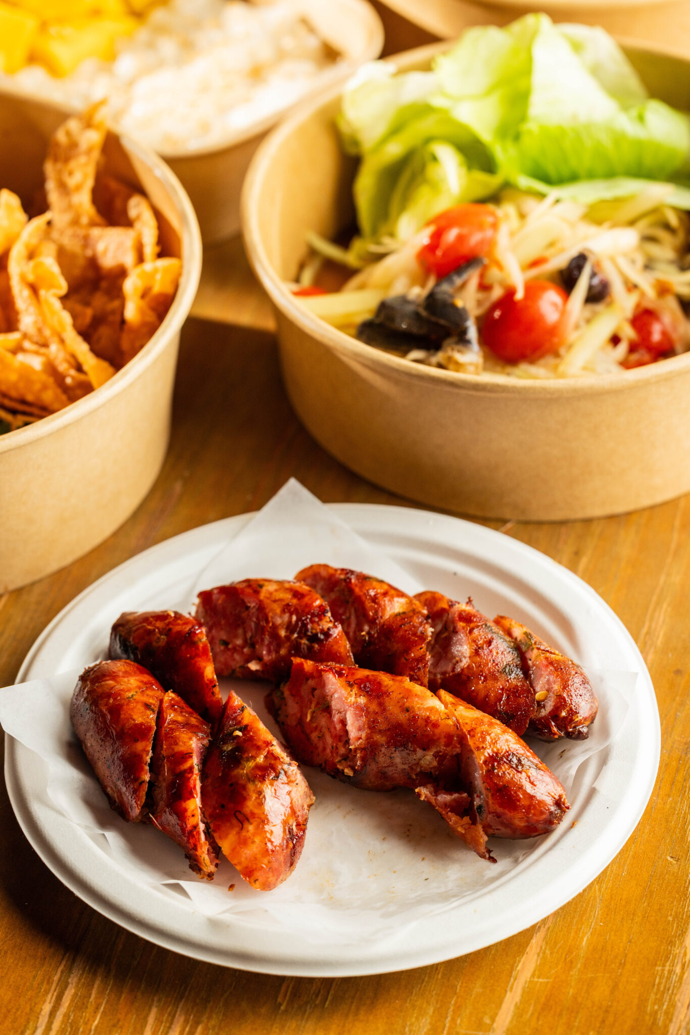 “We also have the Lao (spicy) sausage ($10.99). It’s very savory and herbal. I mean, everybody loves it,” she says. “Even people here who think they will try it. They love it.”