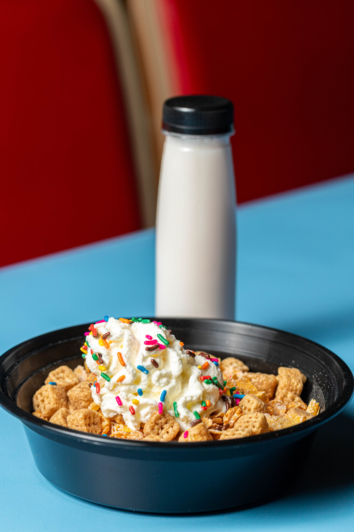 The selection includes cereals, ice creams, milkshakes, coffees, hot cocoas and sweet treats with dairy-free options. In the front of the menu, you’ll find cereal combos with milk and handmade whipped cream ($6.98) for those who can’t decide.